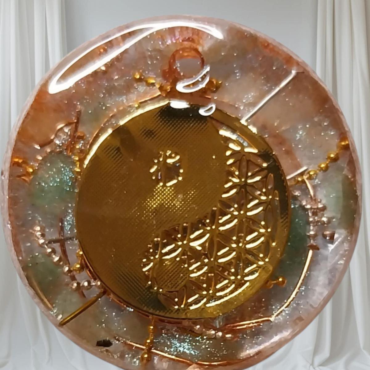 Médaillon Orgonite Fleur de Vie – Aventurine Cristal
