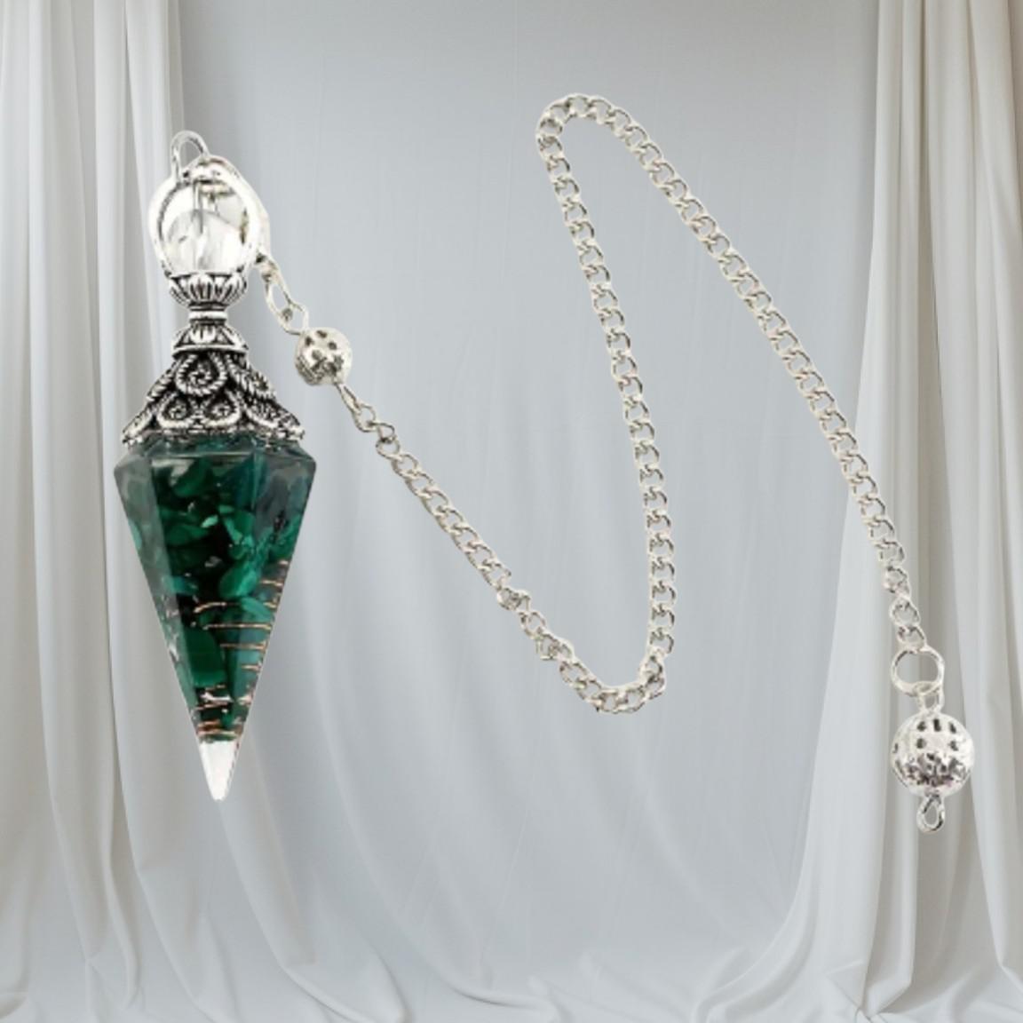 Pendule Divinatoire Orgonite – Malachite & Énergie Cristalline
